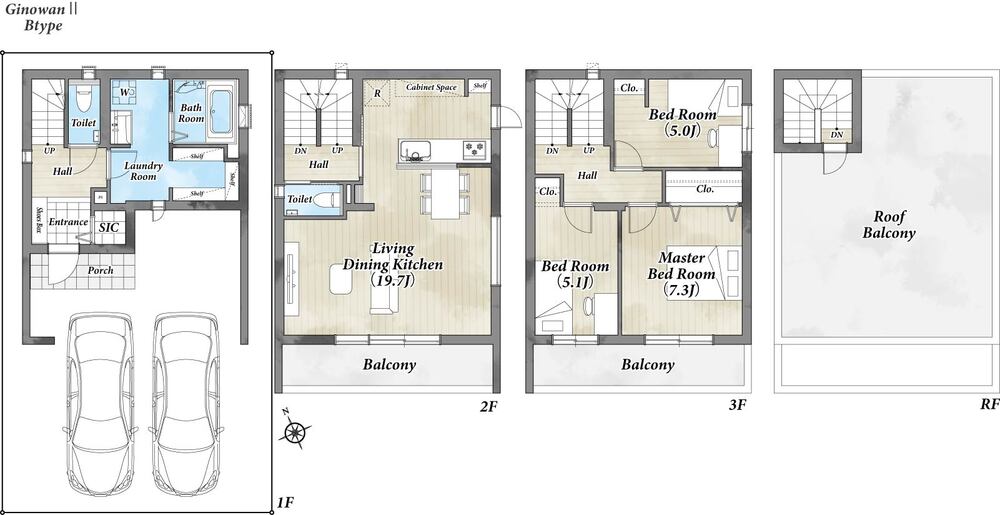 | 延床面積 | 130.84㎡(39.57坪)1F車庫一部含む |
