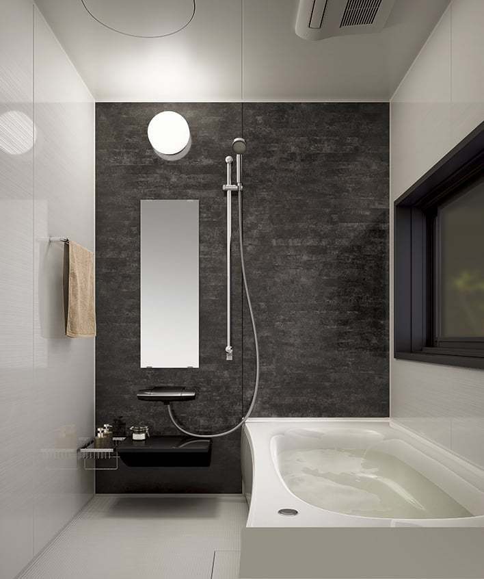 ユニットバス(Panasonic:オフローラ 1616サイズ):毎日のお掃除はサッとふくだけ。アクセントパネルのある広々とした空間はオシャレで快適なバスタイムとなります。※イメージ画像