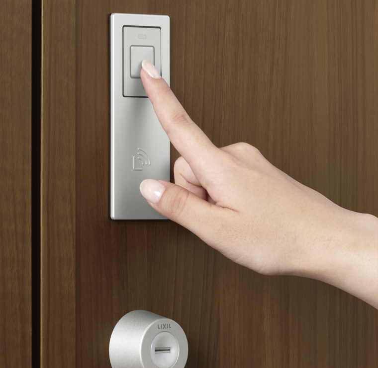 玄関タッチキー:リモコンキーをバッグやポケットに入れておけば、ドアのボタンを押すだけで解錠するワンタッチスタイル。