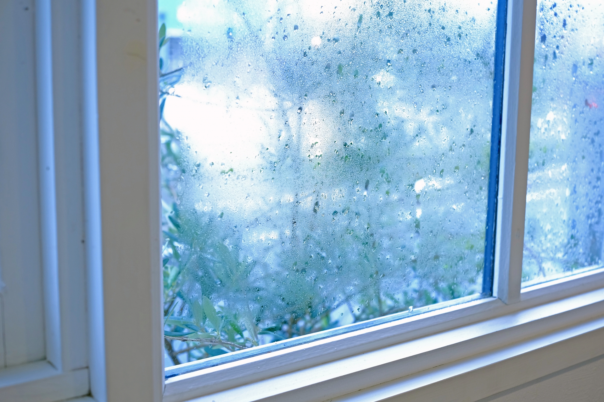 あるいはサッシの隙間から湿った外気が触れると、空気中の水分が保持できなくなり壁面で水滴に変わります。